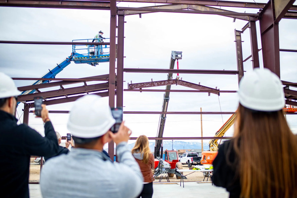 The final beam of the building’s frame was signed and installed.